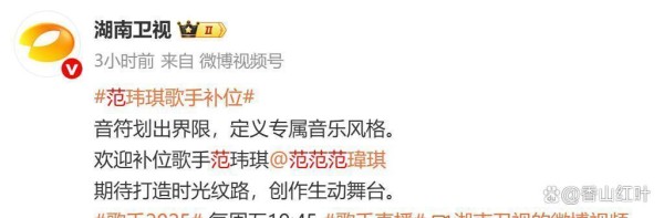 官宣卫兰做补位歌手没多久,湖南卫视又发了一条微博,这次说范玮琪也是补位歌手,不过不确定是不是这周的补位名额。