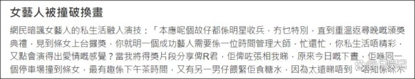 港媒曝TVB女星钟嘉欣与男星车内缠绵致车祸