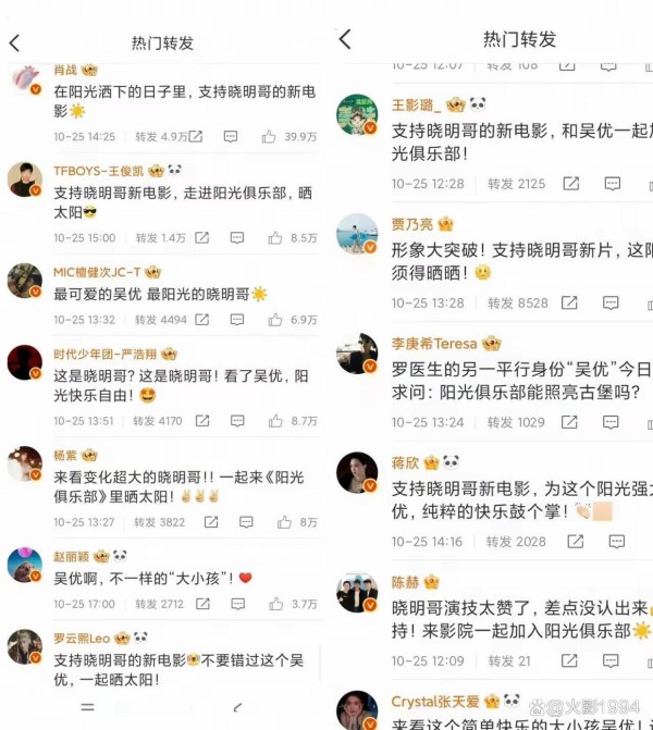 出大事了!黄晓明的新电影《阳光俱乐部》一上映,竟然让半个娱乐圈的顶流明星齐刷刷帮忙宣传!贾乃亮、赵丽颖、刘亦菲、肖战、杨紫、蒋欣、王俊凯……这些平时忙得不可开交的大腕儿们,这次竟然都来给黄晓明打call。这场面,简直像是一场不折不扣的“顶流大会”!