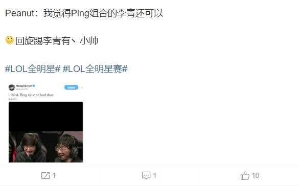 而近日由于拳头举办的全明星赛正式打响了,而小花生和冠军打野Ning王也是一同上场,值得注意的是两个人有说有笑的,看来相处的还是非常融洽的,毕竟全明星赛不像正式比赛那样是比较认真的,相对来说选手也是比较轻松,但是每年的全明星赛都是非常受关注的,而Ning王和小花生作为LPL和LCK赛区各自人气非常高的打野选手,相信两个人同台比赛也是比较有意思的。