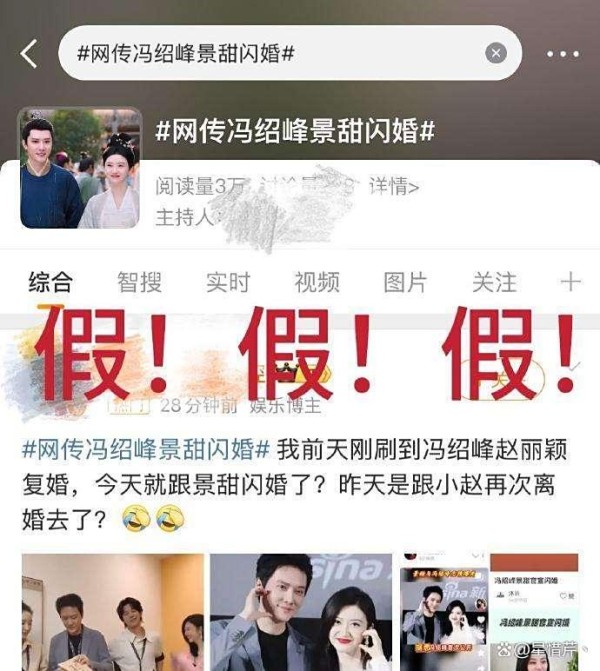 网传景甜冯绍峰闪婚,乔杉转发后秒删,双方工作室紧急辟谣