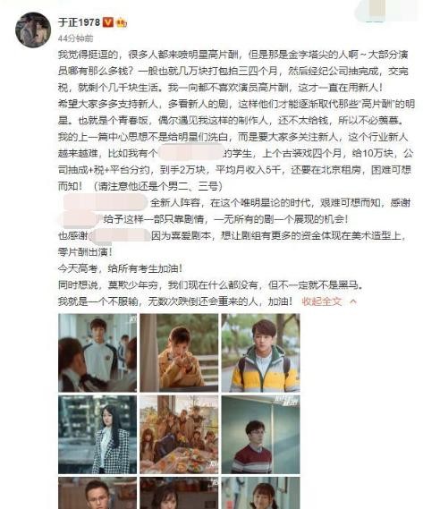于正揭明星片酬内幕,1000万片酬到手几十万,明星真没那么有钱