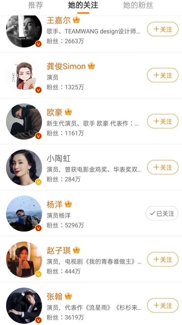 可以确定的是,在打call之前,这些艺人里那英关注了王凯和肖战。肖战是在上《我们的歌》那会那英和肖战互关,但是那个节目上她貌似只关注了肖战和张韶涵,并没有关注其他艺人,比如说阿云嘎、刘宇宁、周深。
