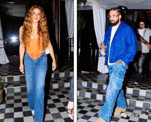 当晚的照片显示,夏奇拉穿着亮橙色吊带上衣、蓝色牛仔裤、白色厚底高跟鞋和配套的白色单肩包,看起来容光焕发。她的头发是她标志性的层叠卷发,化着古铜色的妆容。Drake 穿着明亮的钴蓝色夹克,搭配白色 T 恤,搭配蓝色纹理牛仔裤和毛茸茸的棕褐色高跟靴,看起来很酷。他被拍到离开派对时手里拿着一杯饮料。