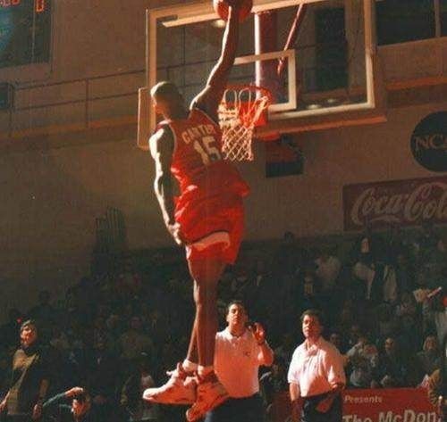3、高中的时候卡特就参加扣篮比赛,一次扣篮比赛中,卡特完美的完成了6个高难度的扣篮最终夺冠,当时参加比赛的还一个人,他就是凯文-加内特,他在看到卡特完成一个单手360度转体扣篮后便选择了离开。