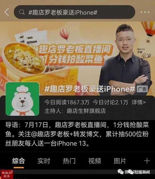 这是一场堪称餐饮界最牛的直播,在某种驱使下,本场直播打破了多项直播记录。根据趣店方面提供的数据,该直播场观人次达9587万,销售订单量等指标打破抖音历史峰值,GMV达到了2.5亿。