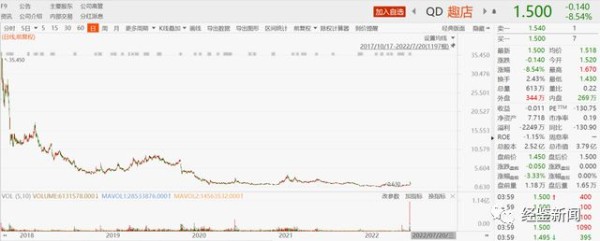 数据显示,趣店股价一度跌至到1美元的关口,公司市值蒸发98%,从100亿市值跌到了2亿。