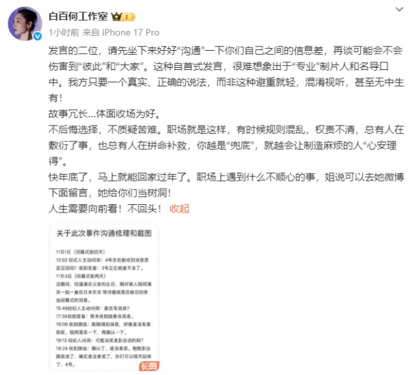 白百何工作室回应东京电影节争议!晒沟通时间线盼体面收场