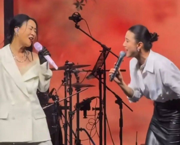 由于宋佳互动太踊跃,那英干脆邀请她上台一起合唱。身为见惯大场面的影后、视后,宋佳也大大方方地上了台,为观众小秀一把唱功。