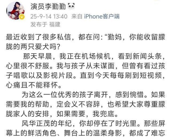 李勤勤悼念于朦胧称愿意收留其爱犬!曾收养周海媚爱犬:以善意续写生命温度,两次“兜底”背后的人性光辉