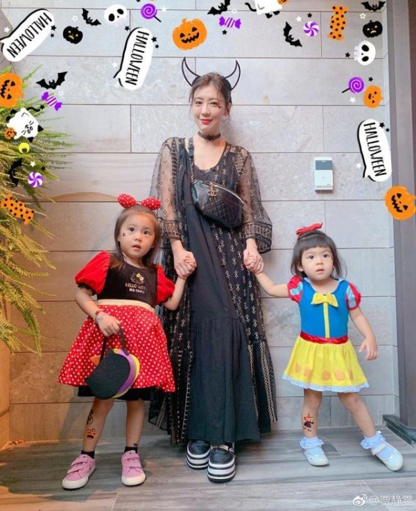 每一年贾静雯都会带着两个女儿过这个节日,今年也不例外,早在之前贾静雯就已经晒出了女儿万圣节的造型,一个cos白雪公主,一个cos米妮老鼠,两个小可爱公主造型也是超萌。
