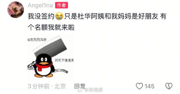 对此,3日下午,甜馨发声否认签约乐华:“我没签约,只是杜华阿姨和我妈妈是好朋友,有个名额我就来啦。”