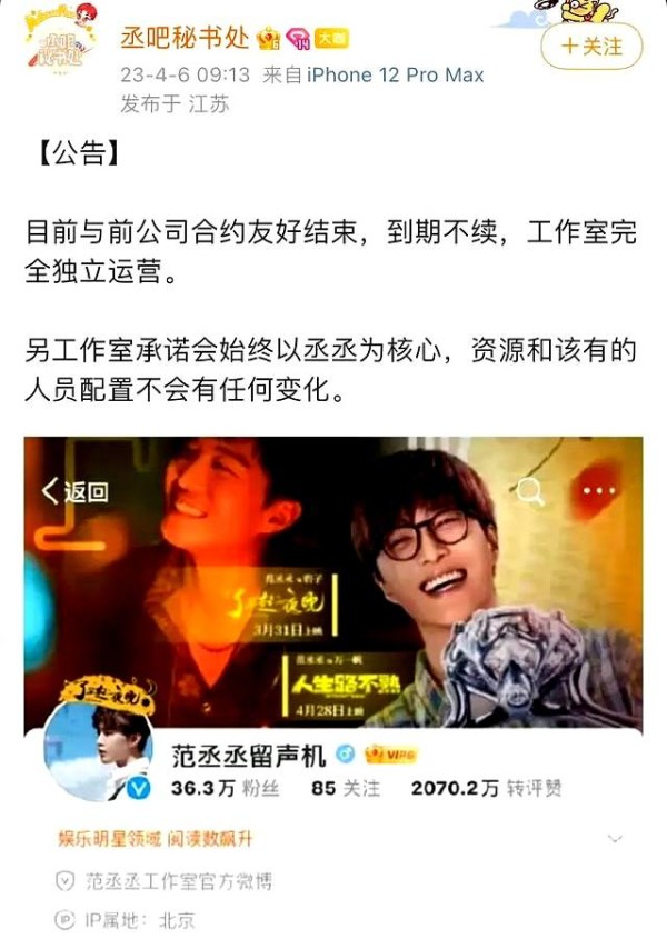 更让人头疼的是,除了王一博,范丞丞也在2023年“挥一挥衣袖,不带走一片云彩”地离开了。