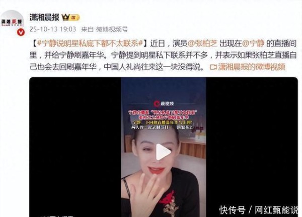 “明星私底下都不太联系”,10月11日,演员宁静在直播间轻描淡写的一句话,撕开了娱乐圈人际关系的华丽泡沫。当她与张柏芝隔屏互动时,这句看似随感的感慨,恰逢张柏芝刷来“嘉年华”虚拟礼物,瞬间将直播间化作折射行业生态的棱镜。宁静急忙笑言:“哎呀芝芝我不是要套你的嘉年华,下次你直播的时候,嘉年华马上到。”这番礼尚往来的对话,让“疏离常态”与“流量社交”在同一时空碰撞出耐人寻味的火花。