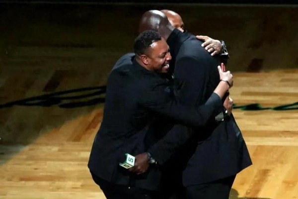 在凯尔特人为加内特举行的球衣退役仪式中,加内特、皮尔斯、雷阿伦三个老男人相拥直接上了热搜。这一抱更是称为世纪和解,他们长达10年的恩怨也就在这一刻烟消云散。