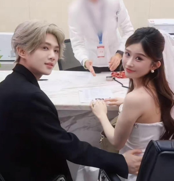 在工作人员的帮助下,鹿哈和女友完成结婚手续,小两口回眸看向镜头,幸福感直接溢出屏幕。