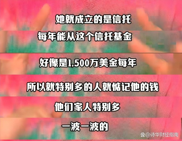 这位女明星在离世前建立了信托基金,李春平每年可以从该基金获得约1500万美元的固定收益。