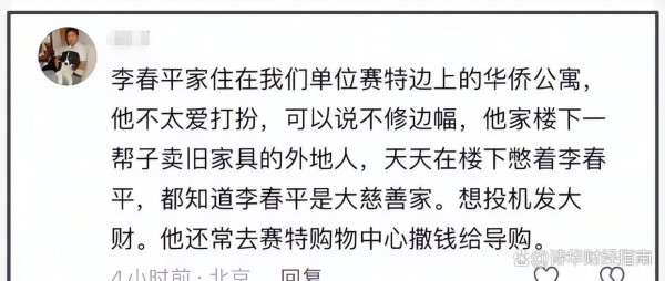 一位自称曾与李春平共同服役的网友分享了一段往事,提到自己的孩子曾在首都北京购置房产时背负了三百余万元的银行贷款。