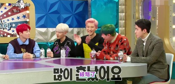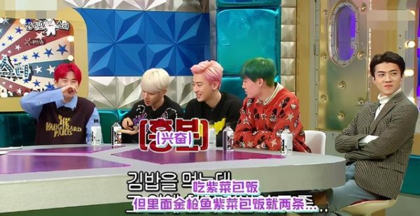 当时伯贤在节目中透露,在刚出道的时候,艺人是不能用手机的,工作餐也非常的单一,艺人只能吃紫菜包饭,还只有两个里面是有肉的。EXO就是在这种情况熬了两年左右,一直到发专辑《咆哮》后,情况才有所转变。