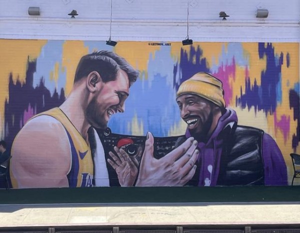 是什么让人们对这幅壁画如此关注?故事要从 2 月 2 日的一笔重磅交易说起。当天,达拉斯独行侠队与洛杉矶湖人队达成交易,一时间,整个 NBA 联盟都为之震动 —— 卢卡・东契奇这位独行侠队的当家球星,披上了湖人队的紫金战袍,成为了这支豪门球队的一员。为了纪念这一历史性时刻,戈祖库奇扬决定用画笔记录下东契奇与篮球传奇科比・布莱恩特之间那温暖的瞬间。