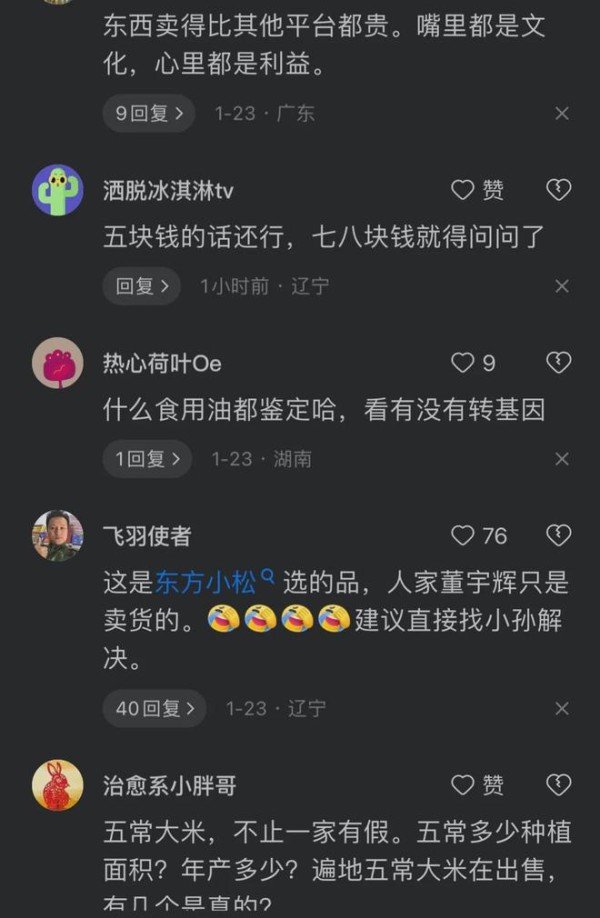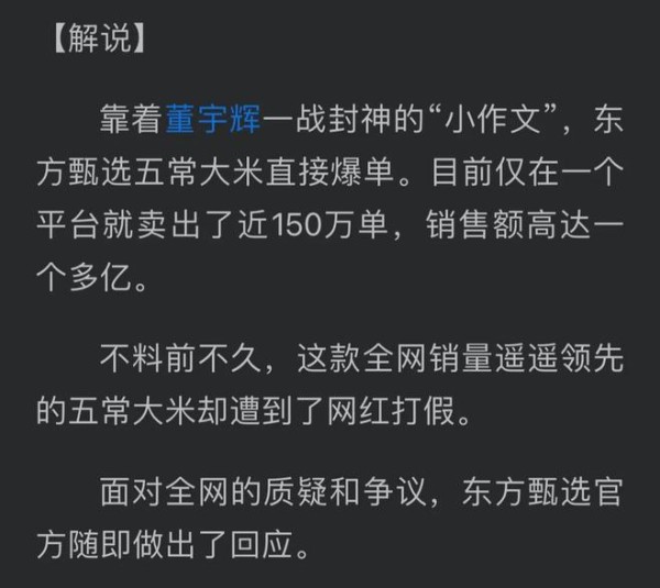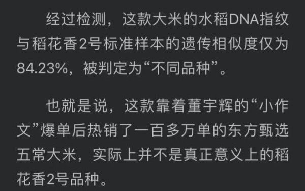 官媒再次批评:董宇辉“小作文”爆卖的销售100多万的东方甄选五常大米,不是真正意义的稻花香2号产品。