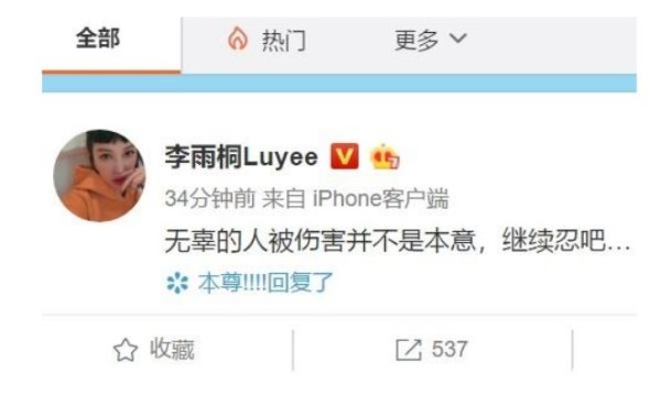 这时,面对无数人的嘲笑,贾乃亮的姐姐坐不住了发文为弟弟鸣不平,声称在这一年里弟弟贾乃亮默默地忍下了一切,而这样一个阳光开朗的男孩,却被黑粉随意的消费,让人气愤不已。这时,爆料人李雨桐删掉了许多关于曝料薛之谦和李小璐的微博,而且直言说无辜的人被伤害并不是自己的本意,还是继续忍着把。或许是贾乃亮姐姐的真情吐露让李雨桐感到了内疚。