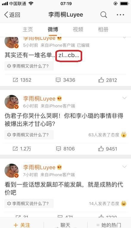 李雨桐实打实的写出了“李小璐”三个字,还打出了两个人的拼音,一个是“zl”,一个是“cb”。李雨桐透露薛之谦和这个两个女星也有染。