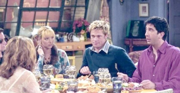 谈及《老友记》中的客串明星,布拉德·皮特无疑是最为引人注目的一位。在第八季的一集中,他饰演的莫妮卡中学老同学威尔,因感恩节受邀参加家庭晚餐而与众人相聚。