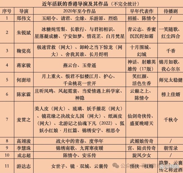 回顾内地偶像剧的发展历程,香港导演那可是称霸了古偶市场近二十年,给观众留下了超多经典记忆。不过近些年,一些资历深厚的香港导演,有的主动,有的被动,渐渐退出了这块市场。像执导过《仙剑奇侠传》《步步惊心》的李国立,2020 年退出唐人影视后,就没再当导演了;钟澍佳 2021 年回 TVB,把事业重心转向振兴港剧,最新作品是《黑色月光》;林玉芬也没以前那么高产了,《无忧渡》《簪中录》这些待播剧,还都是积压剧。当然,还有很多香港导演还在古偶一线奋斗,像郑伟文、朱锐斌、鞠觉亮等等,可他们也面临着市场变化带来的职业危机。