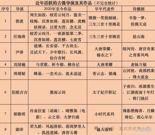 其实,偶像剧导演的格局一直都在变,老牌导演有的慢慢淡出视线,新兴导演不断补位,只是还没发生那种 “天翻地覆” 的大变化。