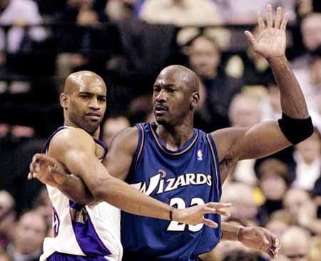 乔-约翰逊和乔丹打过四场,01-02赛季凯尔特人104-95胜奇才,约翰逊得16分10篮板,乔丹32分8篮板。01-02赛季凯尔特人84-88负于奇才,约翰逊得3分,乔丹17分11篮板6助攻。02-03赛季太阳93-98奇才,约翰逊得21分9篮板5助入,乔丹19分7篮板。02-03赛季太阳109-83奇才,约翰逊得19分,乔丹14分。兰多夫和乔丹打过两场球,02-03赛季开拓者98-79奇才,兰多夫得6分,乔丹14分,02-03赛季开拓者91-85奇才,兰多夫13分9篮板,乔丹25分7助攻5篮板。