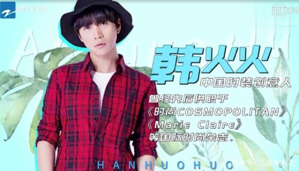 其实上一期节目就预告了有一位神秘男嘉宾到场,豆叔看了半天没猜出来。终于看到真面目,才知道是韩火火。或许有人不熟悉他,韩火火只能算半个娱乐圈的人吧,主要从事时装创意方面的工作。因此,韩火火和很多大明星都认识呢。之前豆叔写过知名大V发博:高圆圆在影院犯二 网友:赵又廷在刷屏你知道么。这位大V就是韩火火。