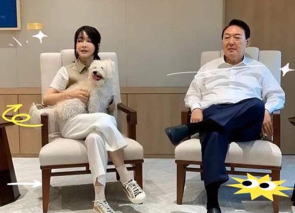 近日,尹锡悦夫妇的一张合影在网络上引发了争议。在这张照片中,金建希怀抱着一只狗狗,坐在总统办公室内,这一幕被不少人质疑公私不分,认为他们将总统办公室当作了私人客厅。