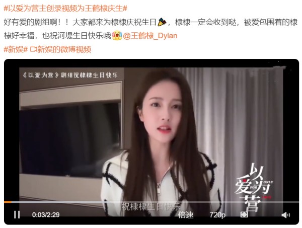 王鹤棣正在和白鹿拍摄电视剧《以爱为营》,剧组让所有“有头有脸”的演员,录了一个视频,为王鹤棣庆生,其中就包括女主角白鹿。王鹤棣担任男一号的剧组《浮图缘》,也发文为王鹤棣庆生。网友最期待的虞书欣,没有公开为王鹤棣庆生,太遗憾了。