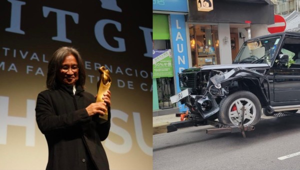 陈可辛驾车为躲避狗失控撞毁道路围栏,一棵树被撞断!现场画面曝光