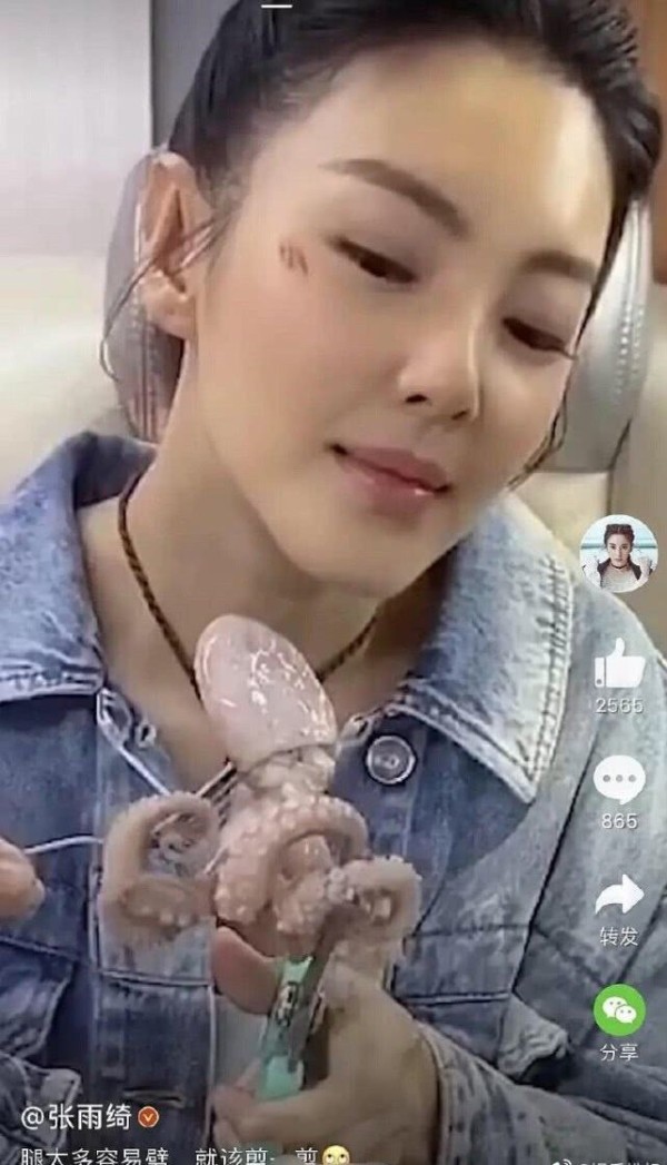 然后是曾经和罗志祥一起出演过《美人鱼》的张雨绮,当时在《美人鱼》里面罗志祥饰演的是八爪鱼,罗志祥这个事情一出,张雨绮发了一个小视频,是用剪刀剪八爪鱼的视频,配文说:爪子太多就该剪一剪。很明显就是在声讨罗志祥了。