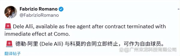 北京时间9月2日下午2点,据知名转会记者罗马诺的消息,前英格兰太子阿里,再度面临无球可踢,他已经与科莫完成解约,目前已经成为自由球员。