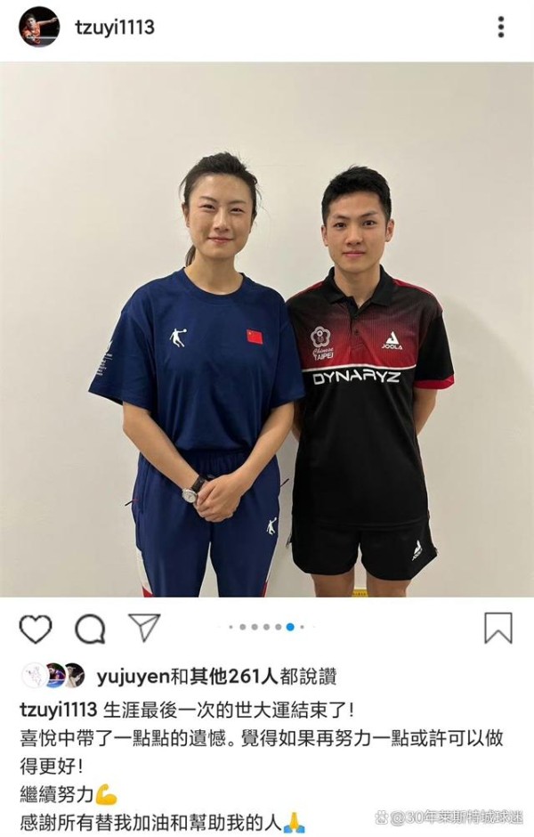 中国台北队的女队员黄郁雯晒出了与丁宁的合影,她还写到:“开心开心开心*100再*100!”而中国台北队男队员杨子仪也晒出与丁宁的合影,他表示感谢每一个帮助自己的人,看来他对丁宁这位国乒传奇大满贯充满了敬仰之情!