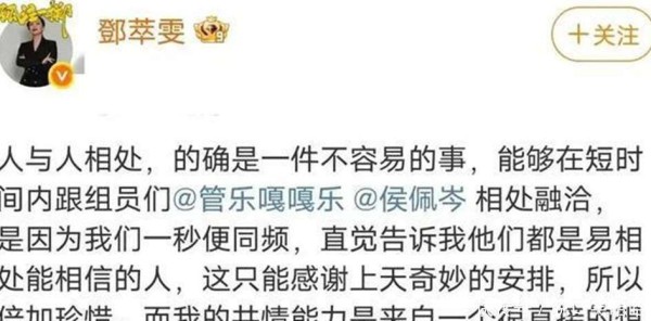 在节目里,她就像一个大姐姐一样,非常关心年轻的队员。除了安慰管乐,还说分享表演经验和舞台心得,比如给管乐讲解舞蹈技巧和情感表达要点。这不仅让年轻队员们成长,也促进了整个队伍的团结进步。这种前辈对后辈的关爱,就像接力棒一样,传递着正能量。