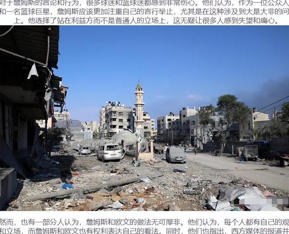 中东冲突是一个复杂而又敏感的问题,解决它需要全球各方的共同努力和妥协。我们应该尊重勒布朗·詹姆斯和其他体育明星发表自己的观点和意见,但也要意识到他们可能缺乏深入的了解和研究。在进行全球讨论时,我们应该保持开放的心态,尊重不同的观点,并寻求和平和可持续的解决方案。