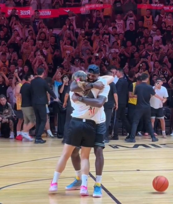 詹姆斯与李梦热烈拥抱,关系亲密引关注,詹姆斯成都体育馆精彩亮相吸引万众球迷围观