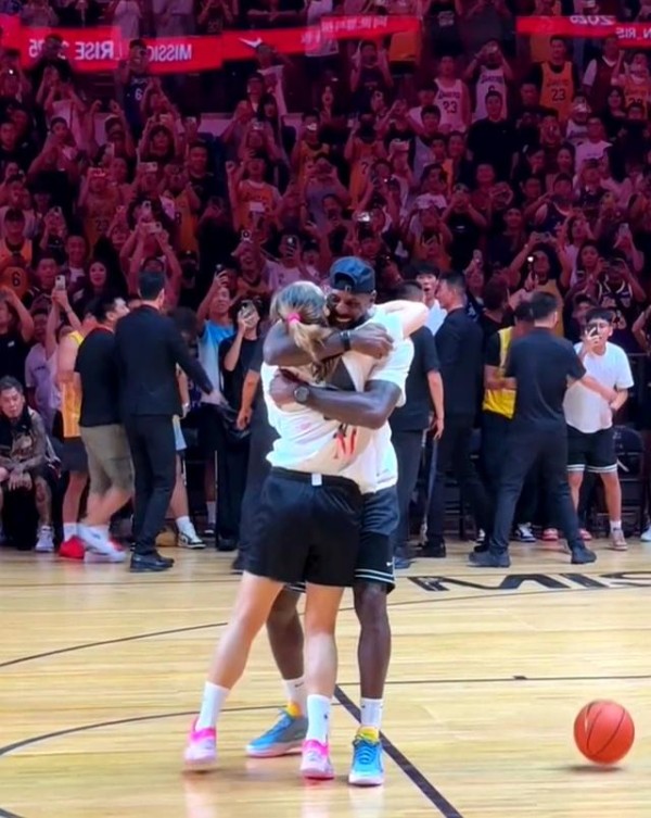 恭喜!李梦追星成功,与詹姆斯互动被拥抱,一脸娇羞,晒幸福时刻
