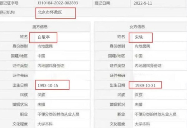 白敬亭和宋轶领证啦?有网友曝他俩登记信息,还晒出了更详细铁证
