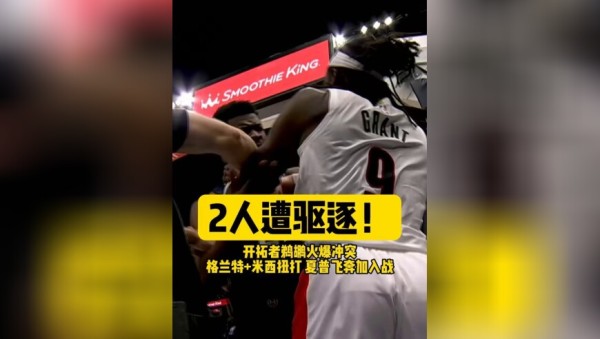 2人遭驱逐!开拓者鹈鹕火爆冲突 格兰特+米西扭打夏普飞奔加入战 #开拓者 #鹈鹕 #驱逐