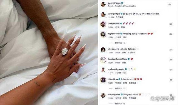 不过这一次确实是真的了,求婚这一浪漫时刻,虽然细节尚未完全公开,但从社交媒体上流出的照片与视频来看,乔治娜左手无名指上那颗闪耀的钻戒格外夺目,她满脸幸福地依偎在 C 罗身旁,眼神中流露出无尽喜悦与感动。消息传出后,全球社交媒体瞬间被刷屏。粉丝们纷纷在评论区留言,送上最真挚的祝福,恭喜两人修成正果。不少网友感慨,见证了他们九年的爱情长跑,如今看到求婚成功,仿佛看到爱情最美好的样子。C 罗的队友、足坛名宿以及各界明星也纷纷通过不同方式表达祝贺。一些曾经与 C 罗在赛场上针锋相对的对手,也送上祝福,称赞他们的爱情故事。
