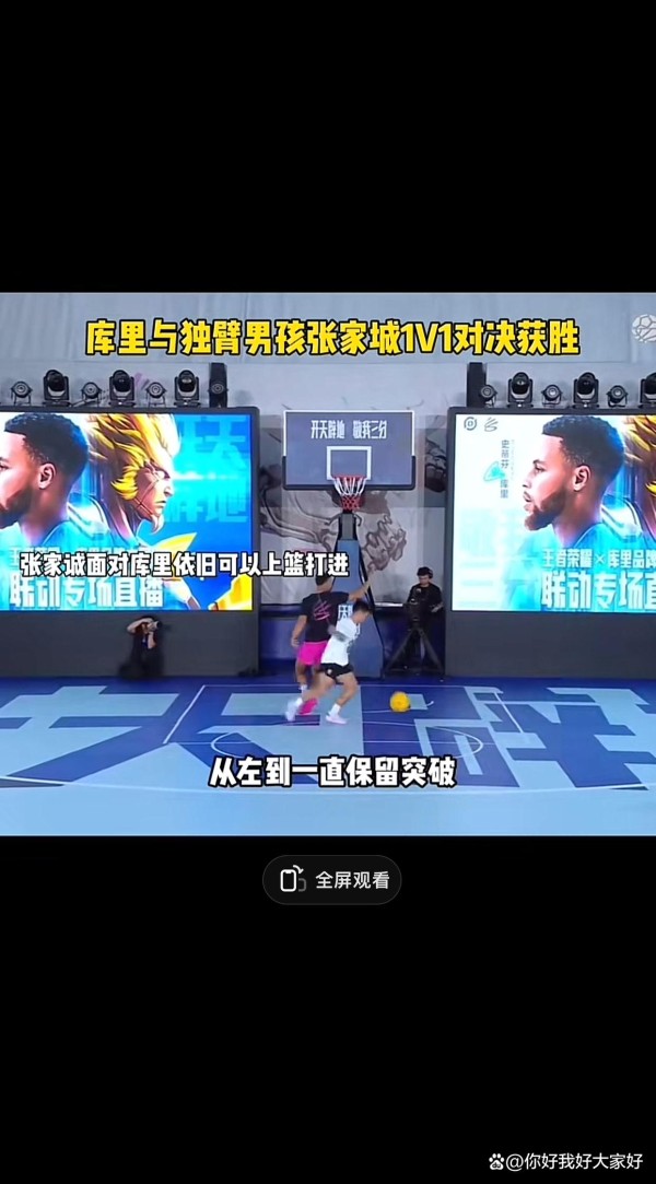 库里与独臂少年张家城的互动