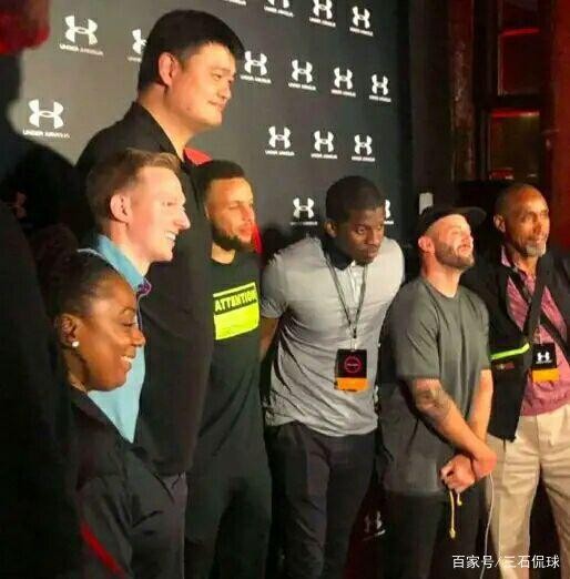 笑喷!库里中国行与姚明同框,1米88傻库秀肌肉