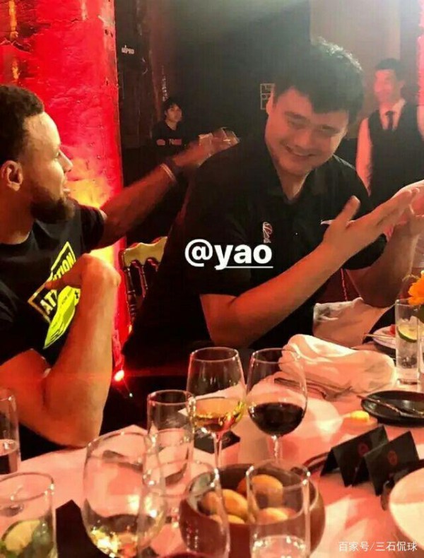 两大巨星聚餐,库里一个小动作逗笑姚明,球迷:姚主席人品真好