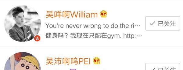 很多人纷纷表示要倒戈吴沛和陈奕辰的CP,但是我们却发现了一个“惊喜”,那就是吴沛和威廉的微博ID竟然格式是一样的,吴沛的微博名称是“吴沛啊呜PEI”,威廉则是“吴咩啊William。”这二人的微博名字真的像极了情侣名。