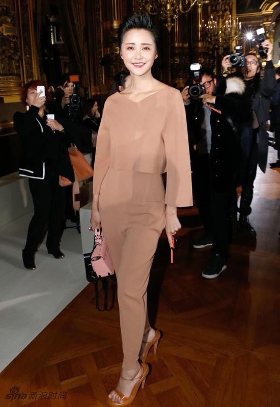2014年3月4日讯,法国巴黎,张歆艺亮相2014秋冬巴黎时装周Stella McCartney 秀场。这一身简约剪裁的裸色裤装,低调得如同本人一样,却令人过目不忘,而清爽的短发也十分时尚大气。
